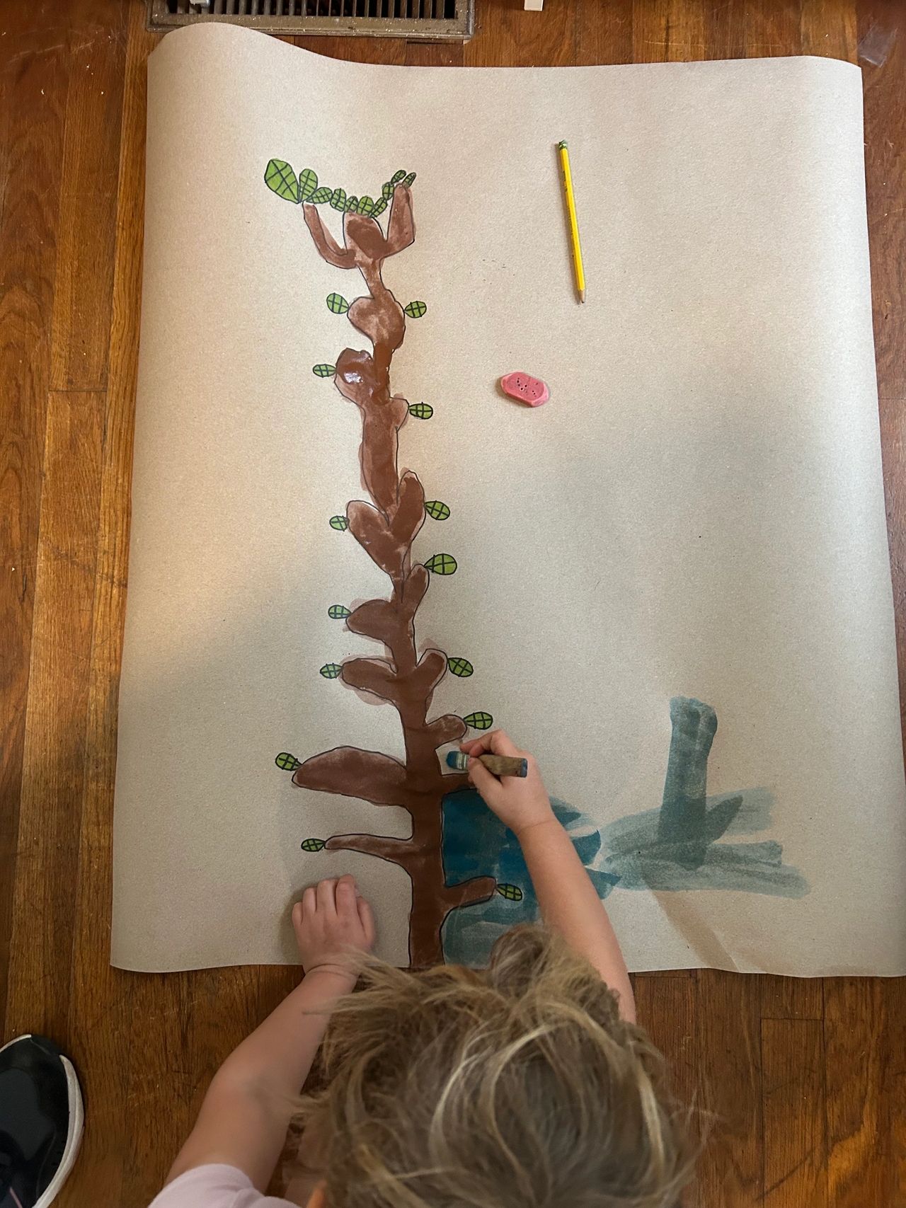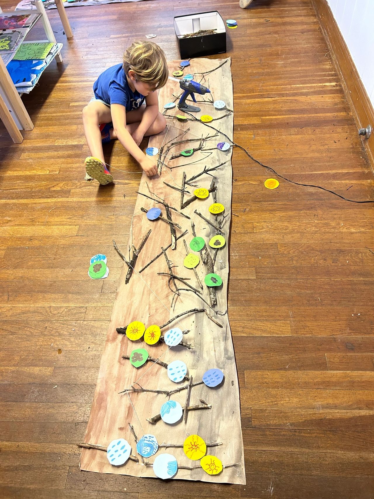 Throughout the project, our students made discoveries about the care and nurturing that trees extend to one another. They learned that trees possess an incredible ability to send nutrients, sunlight, and water to neighboring trees in times of need. They then came up with the idea to add a root system to the group piece and create symbols that would represent sunlight, nutrients, and water.