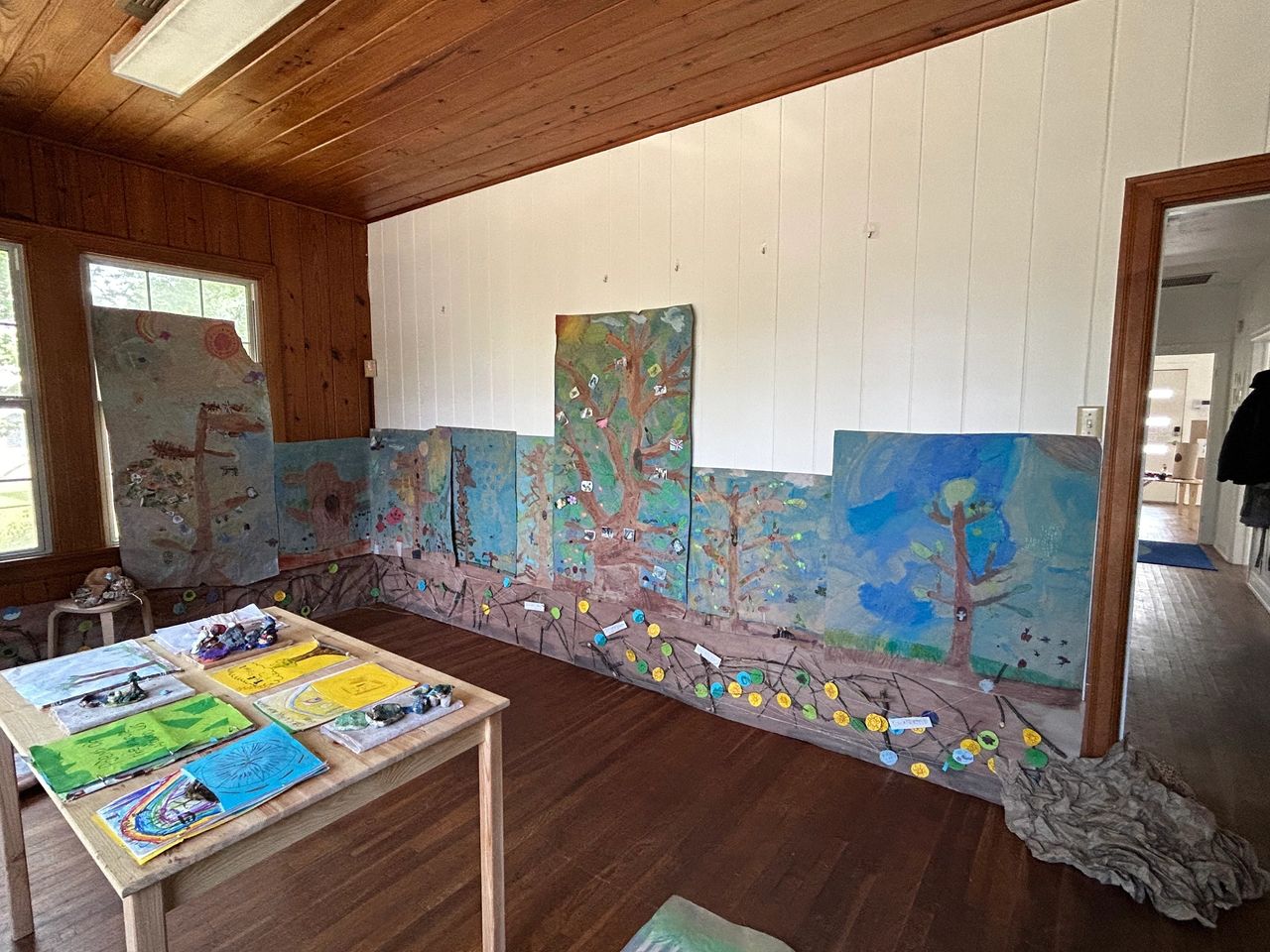 As they continued our investigation, they also explored into the intricate world of fungi. They discovered that these organisms create intricate webs, acting as a communication network that spans across trees. Fungi play a crucial role in transmitting messages and alerting trees to potential threats within their environment. Discussions were had at what type of messages would be added to the root system and what material would be used to represent the web. Students decided on a fine, delicate string and instead of sending messages of danger, they would send messages of love and positive affirmations. To add an interactive element, the group brainstormed on ways to make the messages moveable from tree to tree. Ideas were given and the use of a straw attached to each message was implemented.